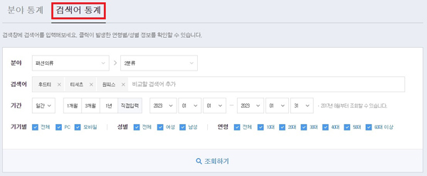 '검색어 통계'를 누르고 원하는 분야를 선택한 후